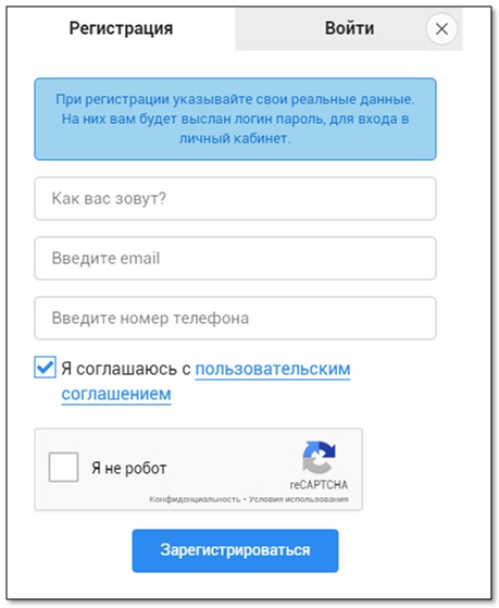 После того, как вы нажмёте кнопку "Зарегистрироваться", на ваш Email и на телефонный номер придёт письмо содержащее логин и пароль для входа в аккаунт.
